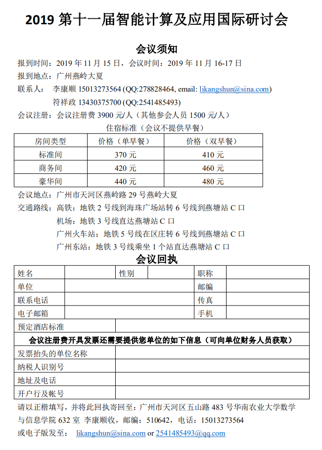Note: One author for each accepted paper must complete the registration by bank transfer before November 1st, 2019 in order for your papers to be included in the conference proceedings.The conference registration fee includes all conference sessions, proceedings, coffee breaks, lunches, reception, banquet, and etc.
