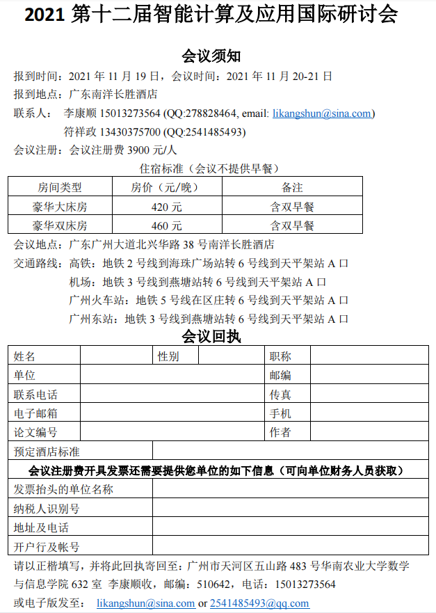 Note: One author for each accepted paper must complete the registration by bank transfer before November 20th, 2021 in order for your papers to be included in the conference proceedings.The conference registration fee includes all conference sessions, proceedings, coffee breaks, lunches, reception, banquet, and etc.